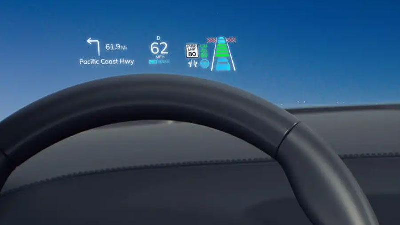 HUD tích hợp sẵn: Hiển thị các thông tin quan trọng như tốc độ xe, chỉ dẫn đường đi, cảnh báo va chạm ngay trên kính lái, cho phép người lái theo dõi mọi thông tin mà không cần rời mắt khỏi đường.