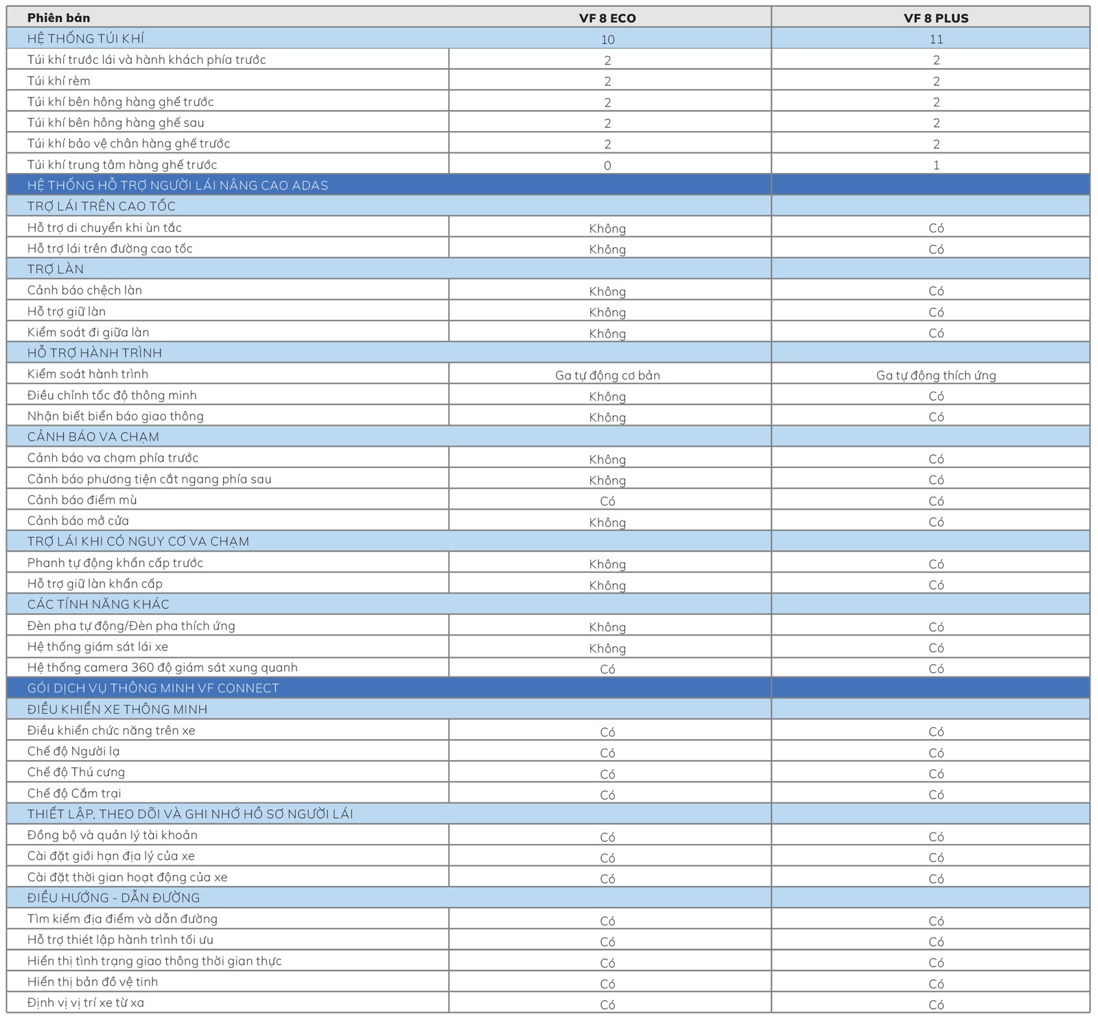 VinFast VF 8 với thiết kế mới sang trọng và công nghệ vượt trội. Với nhiều điểm nổi bật: ngoại thất nhiều màu, công nghệ trợ lý ảo Vivi 2.0 mới, ADAS và VF Connect. VinFast VF 8 có hai tùy chọn là phiên bản VF 8 Eco và phiên bản VF 8 Plus, trong đó phiên bản VF 8 Eco được trang bị động cơ điện có công suất 350 mã lực, đi được quãng đường 562km/lần sạc đầy, trong khi phiên bản VF 8 Plus có sức mạnh lên tới 402 mã lực, đi được quãng đường 457km/lần sạc đầy.